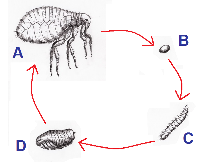 Pupae: When ready, the larvae spins a cocoon for itself, where it continues to grow for another week until it emerges as an adult flea.