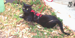 Please make sure that whatever you choose to use for a harness is absolutely secure and that your feline cannot weasel out of it. This is one cat supply you do not want to scrimp on. Your cat’s safety is at stake and should he become frightened, he may panic and bolt. If he is able to slip his harness, he may well run straight into the arms of trouble such as traffic, dogs or worse.